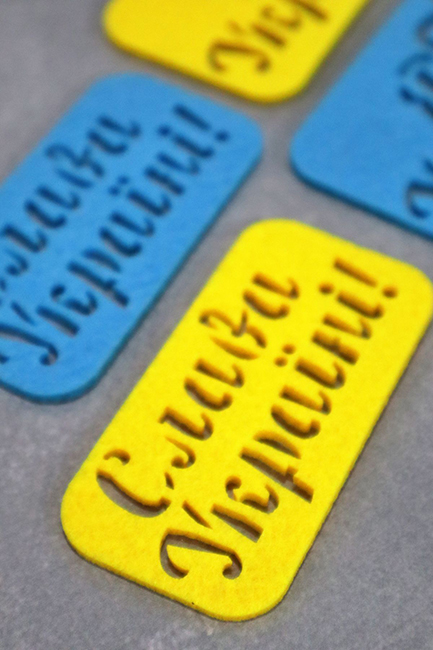Декоративний виріб з фетру Слава Україні 9,5 см (12 шт.в пак.)