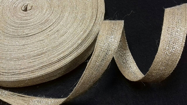 Стрічка джутова 2,5 см, з люрексом, срібло 50 м в рул.