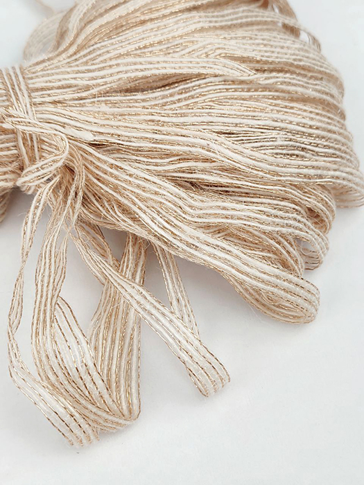 Стрічка джутова 0,6см, біла з срібною каймою, 100 м в рул.