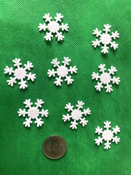 Декоративний виріб з фетру Сніжинка, 3 см, 500 шт в пак