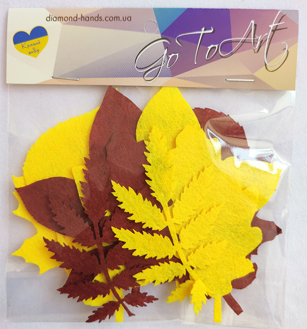 Декоративний виріб з фетру Набір осіннього листя 3, 12 шт в пак