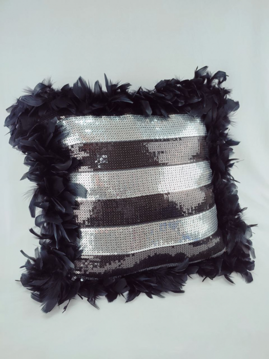 Інтер'єрна подушка в паєтках з пір'ям не вбирає запахи, в ній не заводяться пилові кліщі і мікроорганізми-паразити, тому ідеально підходить для людей, схильних до алергії.