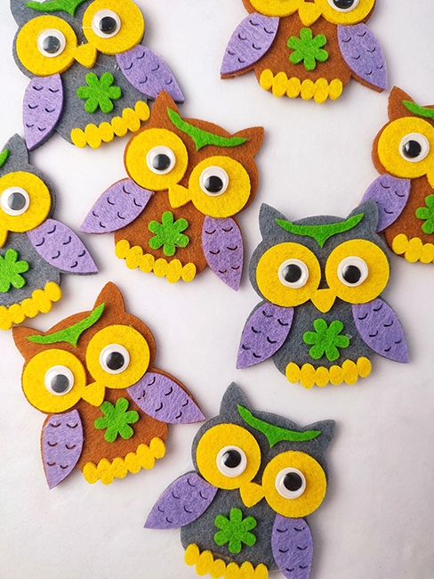 Декоративний виріб з фетру Мудра сова, 6 см, мікс, 10 шт в пак.